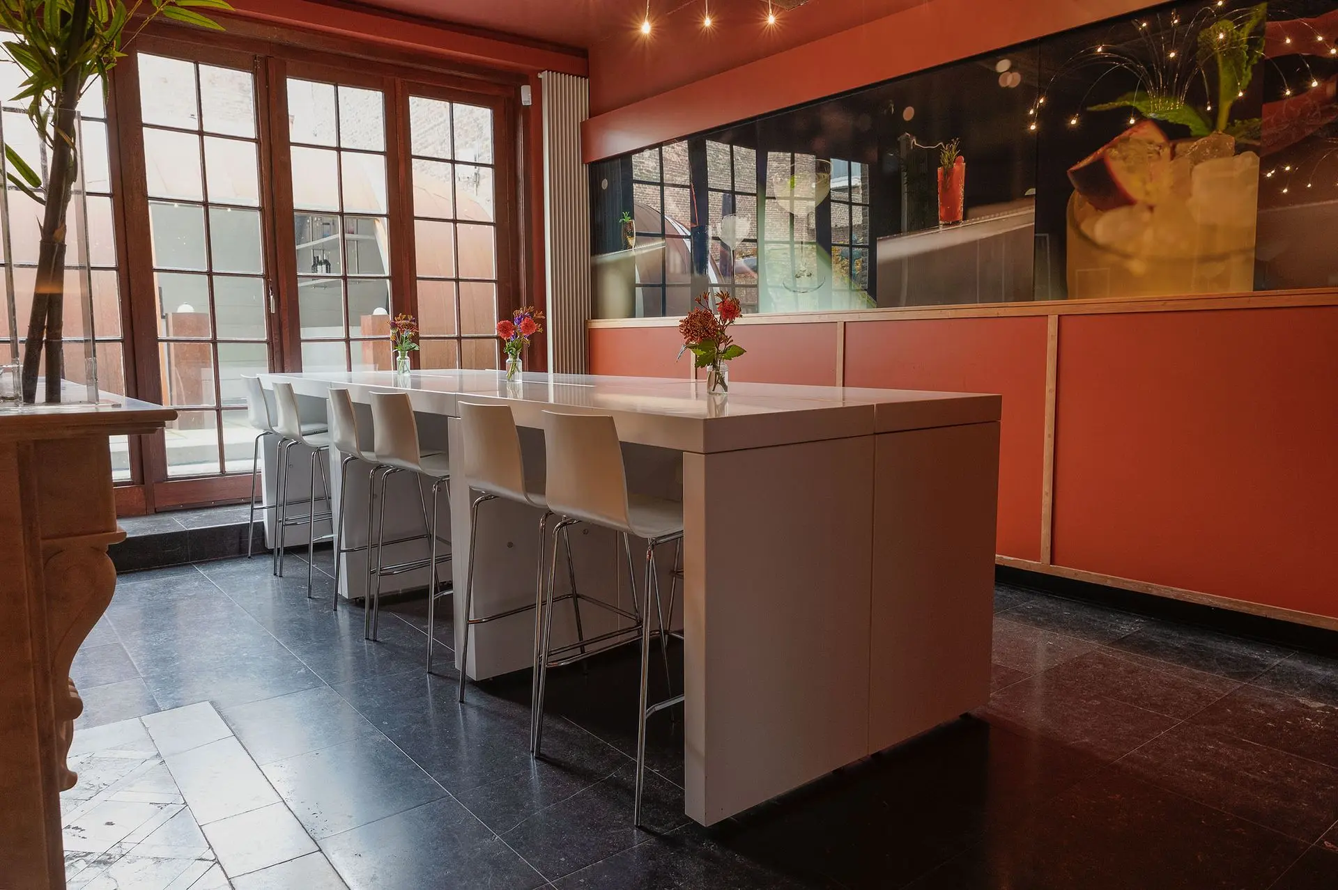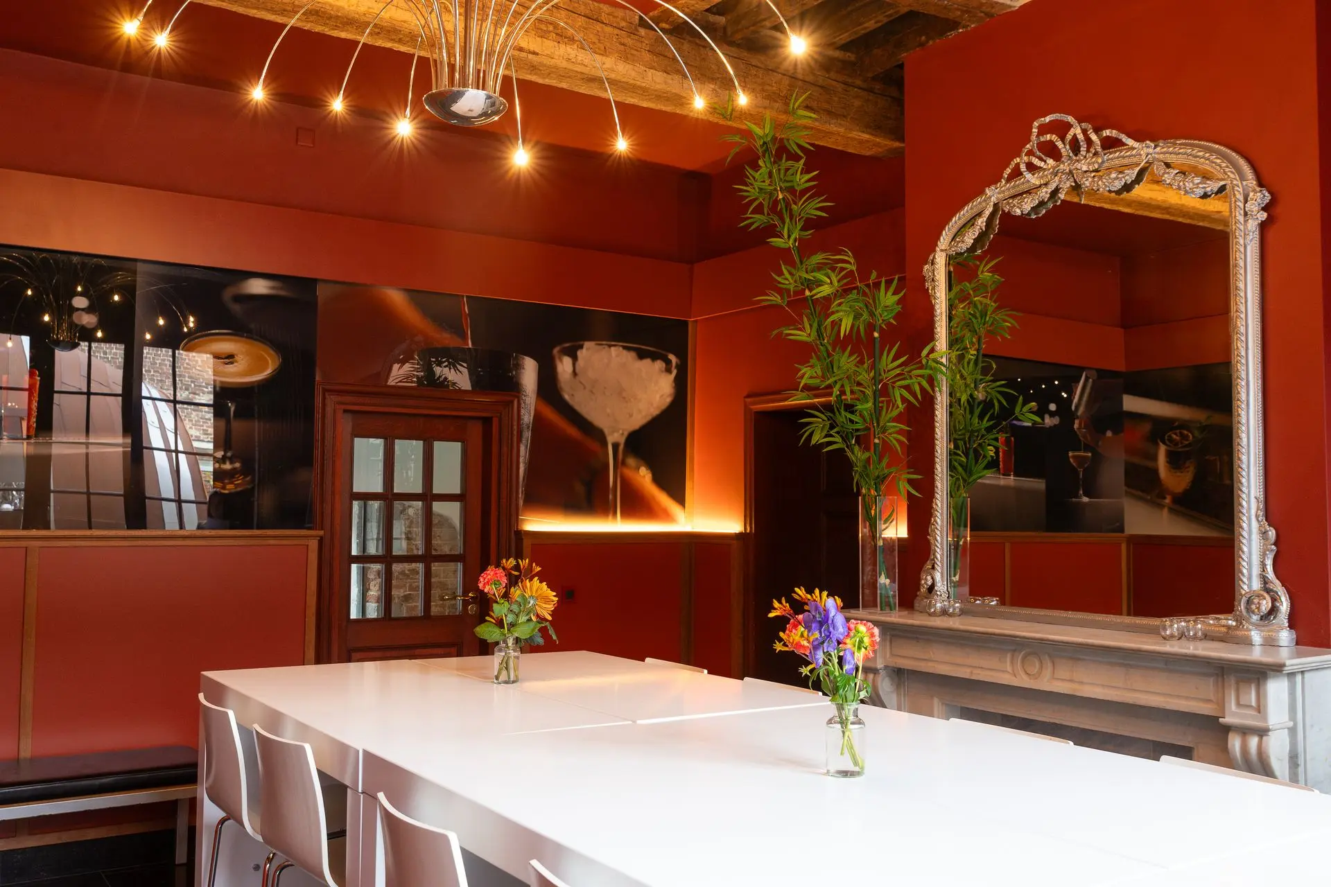 Onze Salle van Oppen is een intieme ruimte voor kleine gezelschappen tot circa 15 personen, zoals een gezellige borrel of een privé wijnproeverij. De kamer heeft openslaande deuren naar de besloten stadstuin met eigen wijngaard. Bij mooi weer kan het gezelschap genieten van deze unieke stadswijngaard.