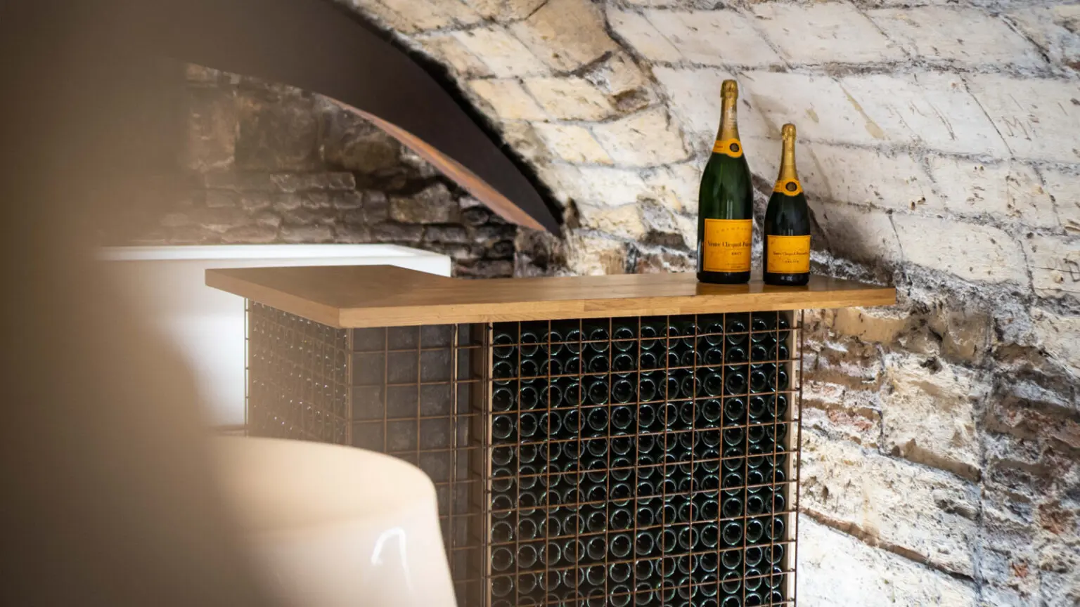 De betoverende champagnekelder met prachtige verlichting is onderdeel van onze ondergrondse gewelven. Dankzij sfeerverlichting en een stijlvol design is deze geklimatiseerde ruimte heel geschikt voor bijeenkomsten en proeverijen tot circa 20 personen. Een proeverij met uitsluitend champagne behoort ook tot de mogelijkheden.