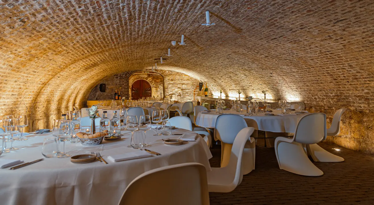 “Bij ons kunt u dineren en lunchen in een ruimte die perfect aansluit bij uw wensen. Kiest u voor een diner in de sprookjesachtige Orangerie of geniet u liever van een authentieke ervaring in onze karakteristieke wijnkelders?”