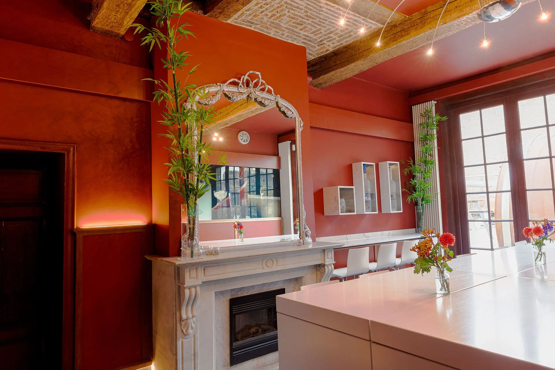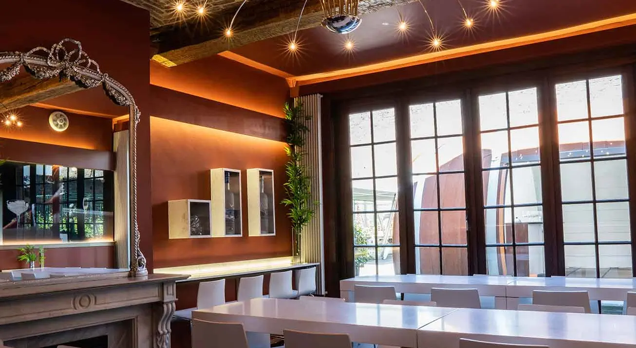 Onze Salle van Oppen is een intieme ruimte voor kleine gezelschappen tot circa 15 personen, zoals een gezellige borrel of een privé wijnproeverij. De kamer heeft openslaande deuren naar de besloten stadstuin met eigen wijngaard. Bij mooi weer kan het gezelschap genieten van deze unieke stadswijngaard.