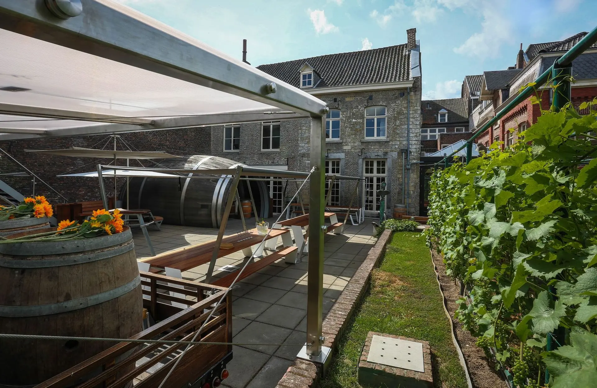 De stadswijngaard van Thiessen biedt de mogelijkheid om onder het genot van een hapje en een drankje te genieten van een charmante buitenomgeving. Dat dit mogelijk is in hartje Maastricht is zeker uniek te noemen. Combineer dit met een rondleiding door de wijnkelders en je hebt het gevoel even op vakantie te zijn in Frankrijk.